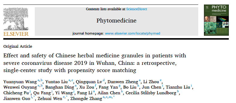 广东省中医院省部共建中医湿证国家重点实验室张忠德教授团队近日发布研究成果,应用柴胡解毒方和扶正救肺方辨证论治可以减少新冠重症患者28天病死率(从21%下降到5%),全文发表在《Phytomedicine》(全文链接:https://doi.org/10.1016/j.phymed.2020.153404,IF 4.2, Q1区)。