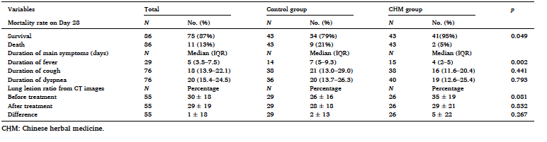 此外,研究发现:中医治疗后,发热、咳嗽和呼吸困难等主要症状改善,发热持续时间明显短于对照组(4天Vs 7天),且对比具有统计学差异。