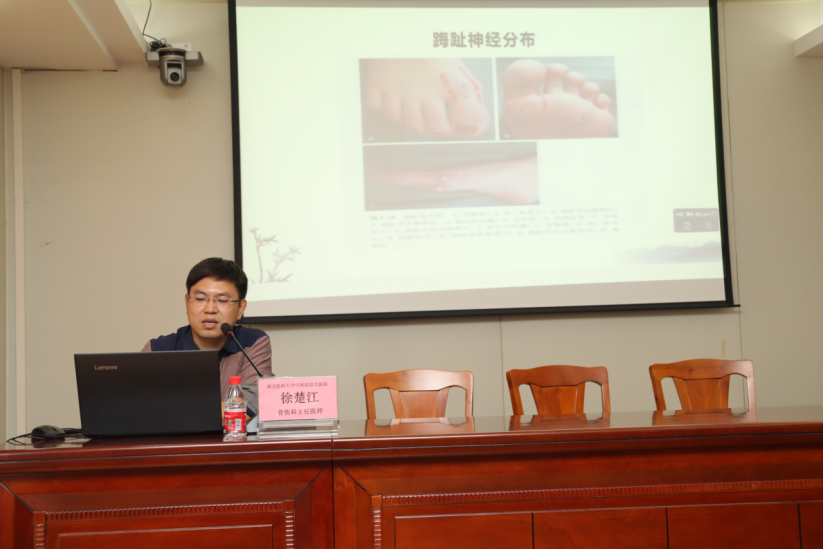 针推康复科杨路副主任、骨伤科足踝专业组组长徐楚江、护理部吴秀梅分别开展《全经针刺法治疗预防中风病临床体会》、《中医“裹帘法”+微创Chevron截骨治疗轻中度足拇外翻》、《感冒的中医调护》的专题讲课。来自信宜市中医院和各基层卫生单位80余名医生参加了培训。会后,还颁发了培训证书。