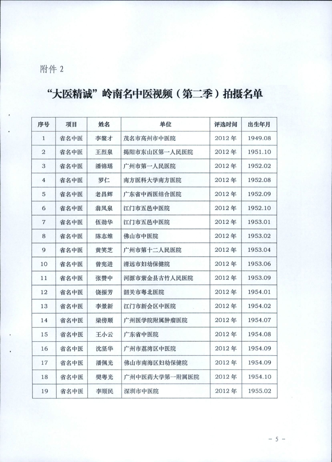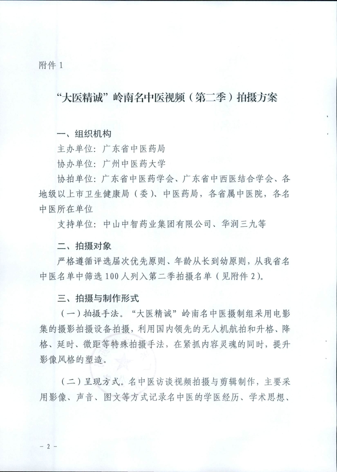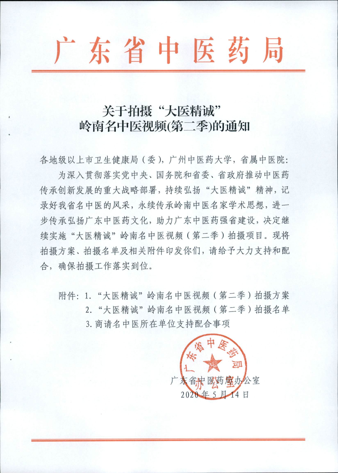 关于拍摄“大医精诚”岭南名中医视频(第二季)的通知