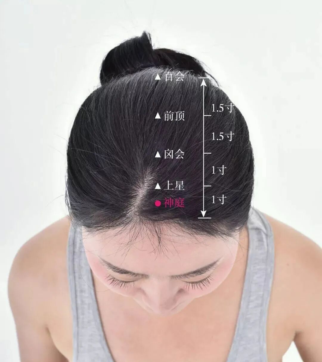 【定位与取法】位于人体头部,当前发际正中直上0.5寸。正坐位或仰卧位,在头前部,前发际正中直上量约半横指处,按压有酸胀感。