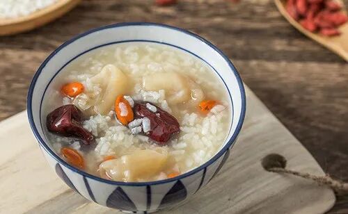 材料:枸杞20克,山药30克,红枣6~8个,大米适量。