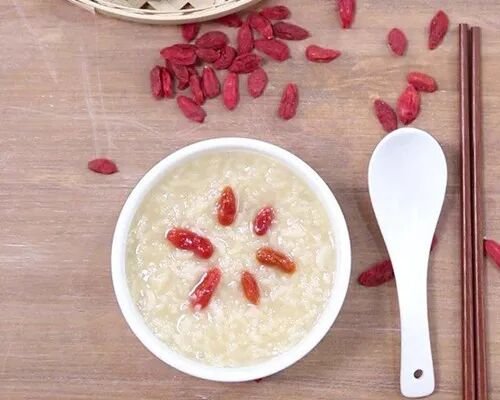 制法:先将大米煮成半熟,然后加入枸杞,煮熟即可食用。