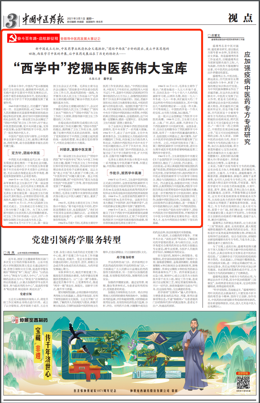 中国共产党的支持与领导,让中医药事业在新中国成立之初,就得以乘风破浪,持续发展,成为创造健康幸福生活的关键力量。