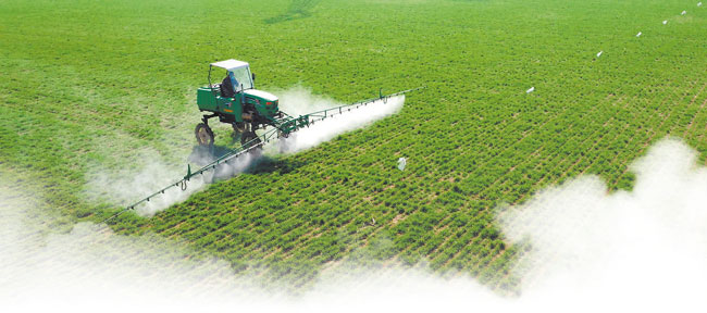 沁阳市西万镇景明村村民在田间喷施农药(杨帆 摄)