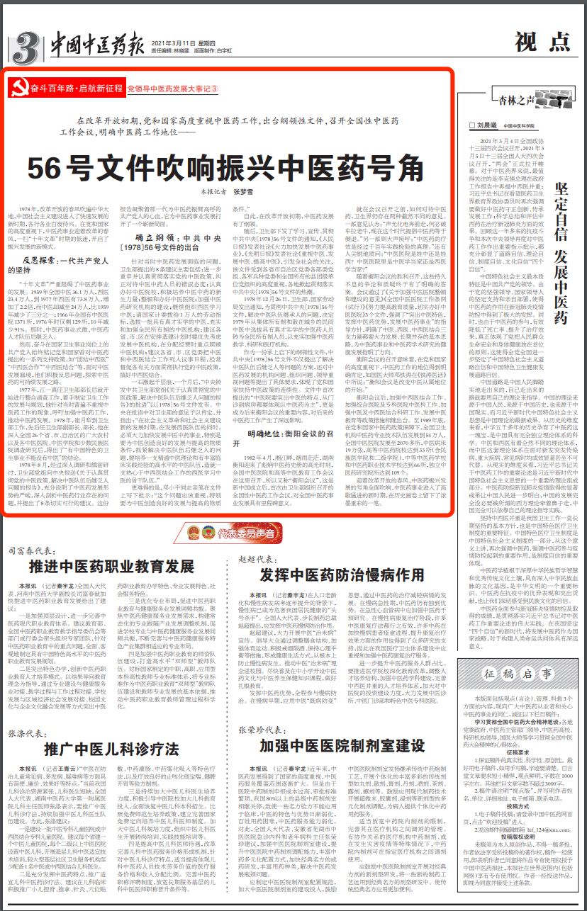 党领导中医药发展大事记③:56号文件吹响振兴中医药号角