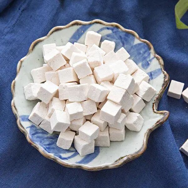 选料:云苓以断面白色细腻、粘牙力强为佳。
