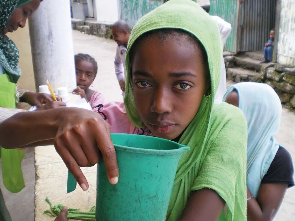 ▲科摩罗女孩服用青蒿素药物